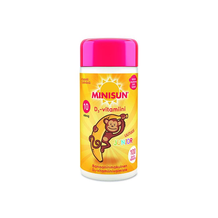 Minisun D-vitamiini Banaani Apina jr.10 mikrog 100 PURUTABL