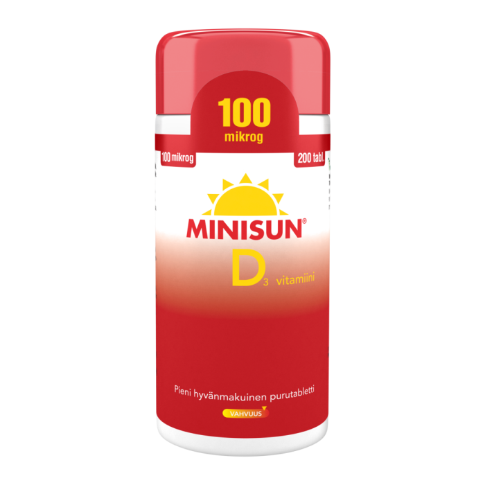 Pieni, hyvänmakuinen purutabletti. D3-vitamiinivalmiste. Sisältävät hyvin imeytyvää D3-vitamiinia ja tablettien annostelu on helppoa. Yksi purutabletti päivässä riittää.